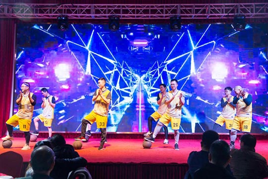本次年會由公司內(nèi)部三個部門聯(lián)合承辦,所有節(jié)目均由承辦部門自編、自導(dǎo)、自演,充分展現(xiàn)了三圣人多才多藝的綜合素質(zhì)和自信向上的精神面貌。帥氣十足的佳佳和優(yōu)雅靚麗的雙雙,這一對主持搭檔帶給大家耳目一新的開場。隨后上演的一段兵乓球熒光舞,科技感十足的服裝、絢麗的七彩光,配上搞笑夸張的肢體動作,子公司艾伯納三圣的節(jié)目征服了在場觀眾。接下來的“灌籃高手”全明星秀,三圣籃球社團(tuán)的部分成員們,在葛教練的指揮下,展現(xiàn)了酷炫嫻熟的運(yùn)球技藝和團(tuán)結(jié)默契的球隊配合。
